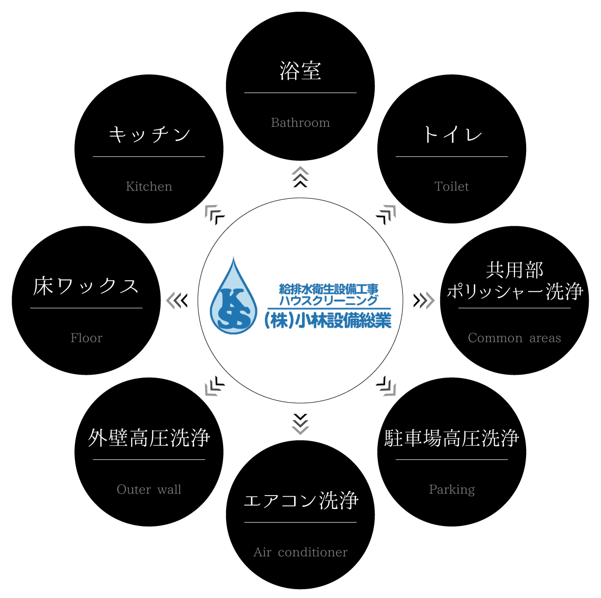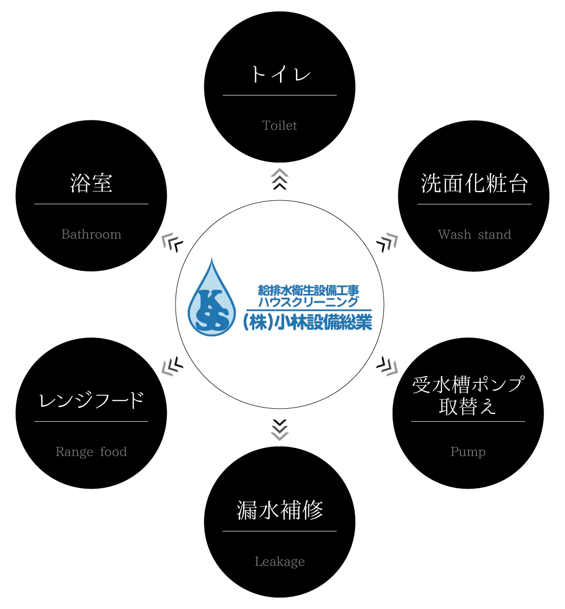 小林設備総業では、管工事施工管理や給排水衛生設備工事、ハウスクリーニングを承っております。お客様のあらゆるご要望にお応えするためには、日々の技術向上や資材・車両の充実、社員の意識向上といった努力を継続することが大事です。常に最良のパフォーマンスをスピーディーにご提供できるよう努めてまいります。